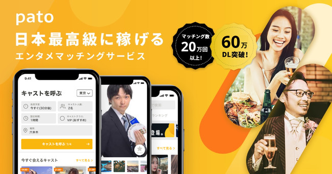 そんなギャラ飲みアプリの中でも日本テレビ「月曜から夜更かし」やTBS「有吉ジャポン」などのTV番組に取り上げられたり、AbemaTVなどのWebメディアにも多く取り上げられ、知名度が急上昇中なギャラ飲みアプリがpato(パト)です。